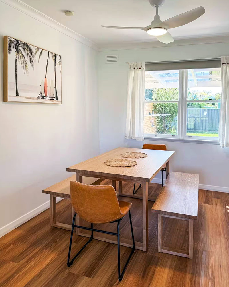 Campbell Cottage boasts both open and enclosed backyard areas, offering plenty of space for your family and even your pet. Enjoy outdoor dining under the covered patio, complete with a family-sized Webber Q BBQ, perfect for relaxed meals.