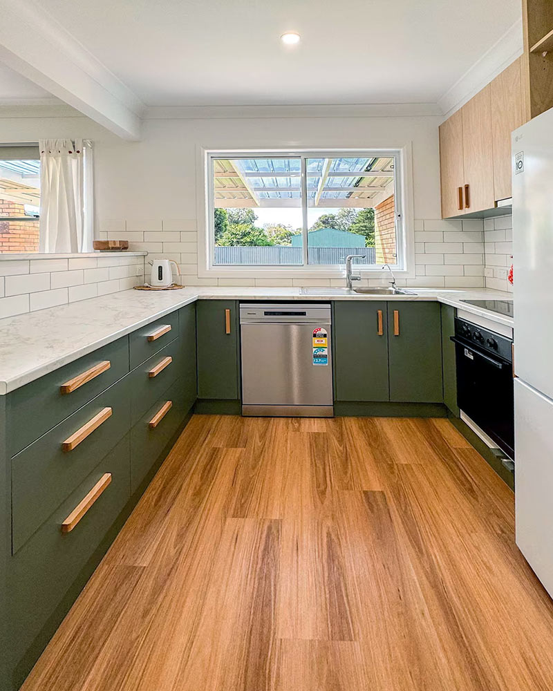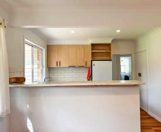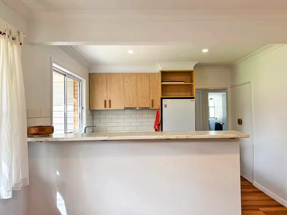 Campbell Cottage newly renovated kitchen is fully stocked with all the essentials to cook and entertain, making it easy to prepare meals during your stay.